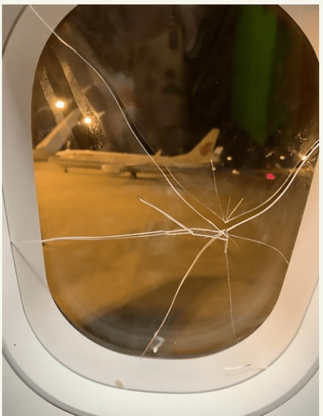 Footage from the aircraft shows flight attendants attempting to move Ms Li her from her seat as she cries and punches the window next to her, cracking open the first layer.